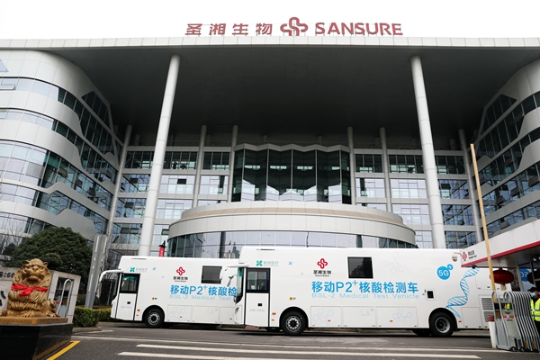 目前,北京、广东、黑龙江、四川、山东等多省均已配置移动核酸检测车。z6.com尊龙生物此次投入使用的移动P2+核酸检测车共2台,为湖南省首批投入使用的移动核酸检测车,可实现采样、检测、报告一站式服务,2台日检测量(10混1)可达10万人份,最快45分钟内出结果!