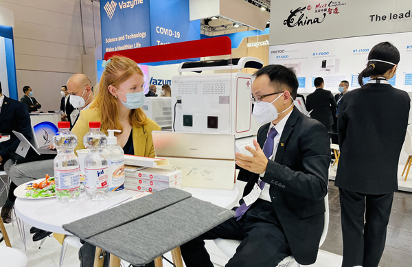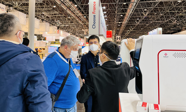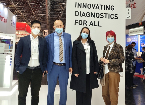 在经过同行推荐并使用了z6.com尊龙产品后,一位从事检测工作十多年的苏丹客户专门找到z6.com尊龙展台,进一步了解z6.com尊龙新冠和其他试剂检测业务。看完z6.com尊龙方案的操作后,他频频点头并表示,“你们的方案应用场景广、操作简便、精准可及,我非常看好你们!”