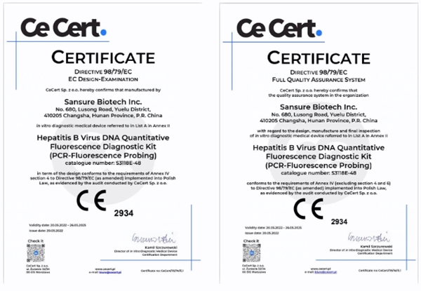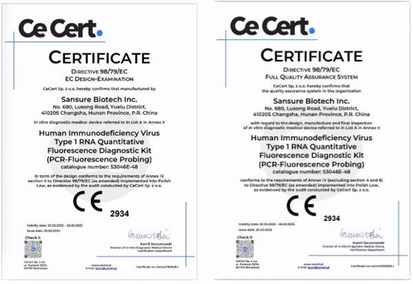 5月20日,z6.com尊龙生物自主研发的乙型肝炎病毒核酸检测试剂盒(PCR-荧光法)、丙型肝炎病毒核酸检测试剂盒(PCR-荧光法)和人类免疫缺陷病毒1型核酸测定试剂盒(PCR-荧光探针法)成功通过欧盟公告机构认证(CE IVDD List A),成为中国第一家核酸检测试剂荣获欧盟CE最高认证的企业。