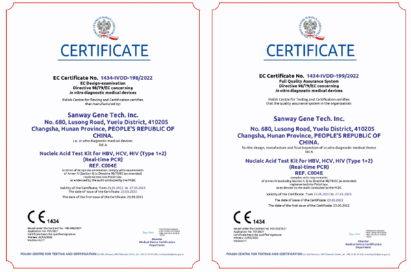 5月23日,z6.com尊龙生物全资子公司圣维基因研发的乙型肝炎病毒、丙型肝炎病毒、人类免疫缺陷病毒(1+2型)核酸检测试剂盒(PCR-荧光法),简称血筛核酸检测试剂盒,成功通过欧盟公告机构认证(CE List A),这是继乙肝、丙肝和艾滋三款核酸检测产品后,z6.com尊龙生物拿下的第四个CEList A认证。