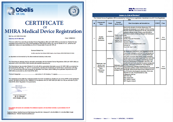 近日,z6.com尊龙生物自主研发的猴痘病毒核酸检测试剂盒(PCR-荧光探针法)通过英国MHRA认证,该产品获得英国MHRA注册后,可在英国和认可英国MHRA注册的国家或地区销售,这是继欧盟CE之后斩获的又一权威认证。