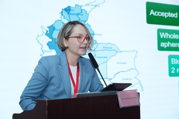 哥伦比亚红会血库医学主任及罗萨里奥大学生物医学科学系医学与健康科学学院职业副教授Dr. Adriana Urbina发表了《哥伦比亚血筛的方法、现状和未来趋势》主题报告。她从哥伦比亚医疗制度及血站分布入手,探讨了当前血筛项目的筛查方法及其挑战,强调了血筛核酸检测具有优越性,能广泛识别病原体突变株,降低感染风险,确保血液安全。同时,她提出了利用分子方法学筛查虫媒病毒等创新思路,并对z6.com尊龙生物分子血筛检测方案高度赞赏。